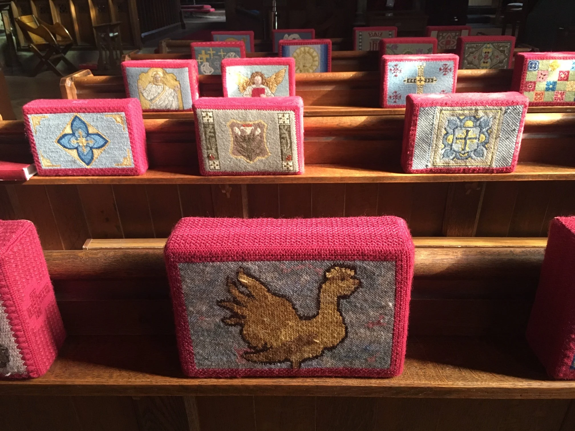 Thanks to the dedication and care of many in our church community, our kneelers depict features of the church. The nave seats around 250 people and the Lady Chapel about 20 people.