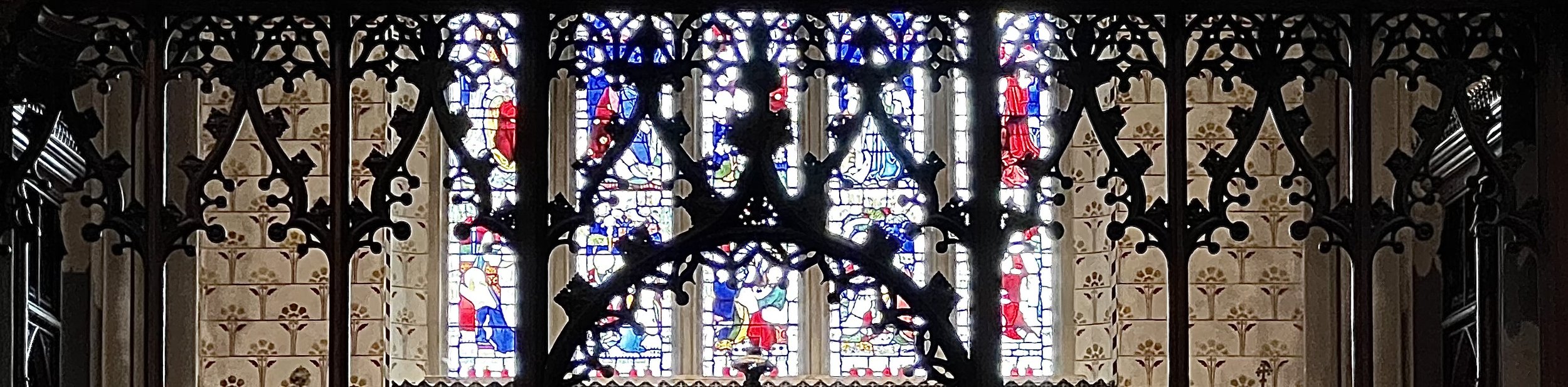 A Work in Progress C.19th embroidery and an old stained glass window found in the basement, both are now on display in the Nave.