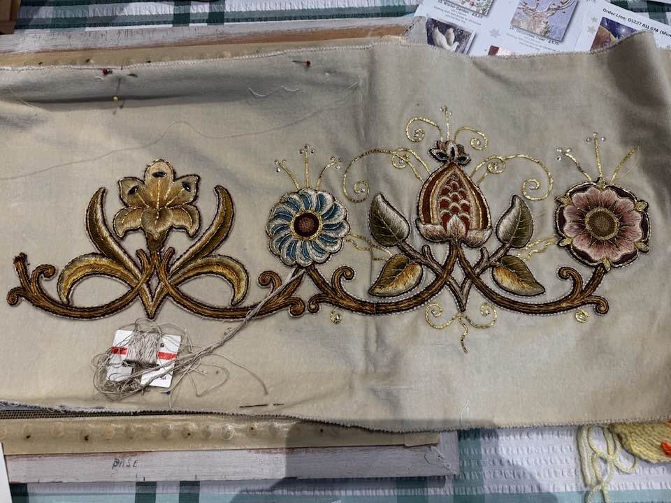 It’s a mystery who the embroiderer was or why their beautiful work stopped…..do let us know if anyone can shed any light…?